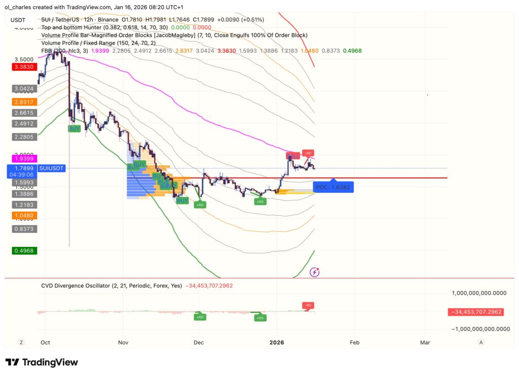 En los mercados, la reacción ha sido sorprendente. Mientras que se podría haber esperado una vela roja masiva y un panic sell, el precio del token SUI ha demostrado una resiliencia notable. El precio oscila actualmente en torno a la zona de los 1,75 $ – 1,85 $, absorbiendo el golpe sin romper su soporte principal.